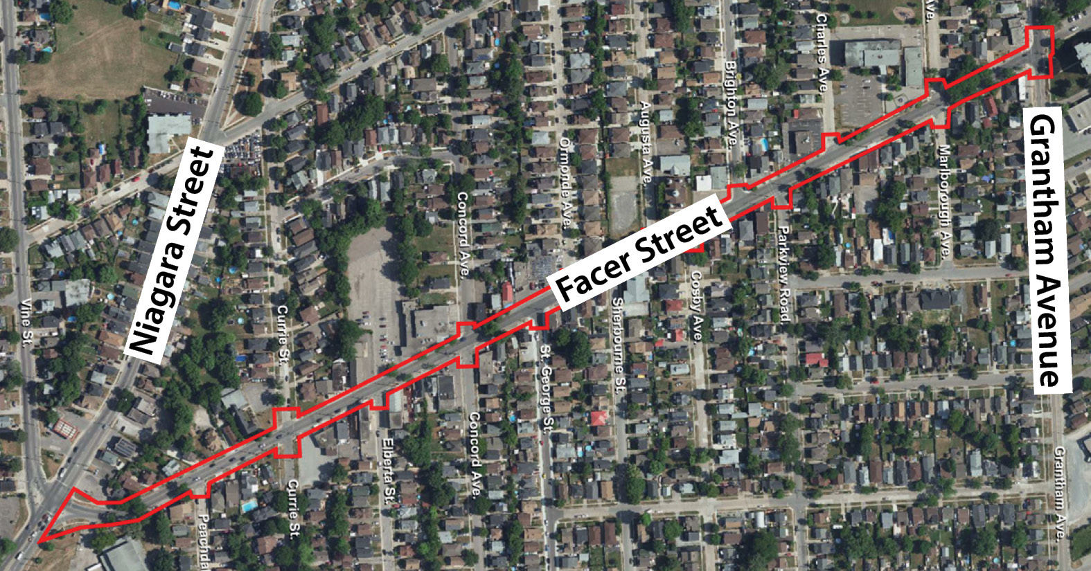 The City of St. Catharines has initiated a study to develop a vision for the revitalization of Facer Street, from Niagara Street to Grantham Avenue, into more of a pedestrian-focused corridor that supports the City’s goal of improving Facer Street’s quality, comfort, and appearance as both a transportation route and a neighbourhood destination.